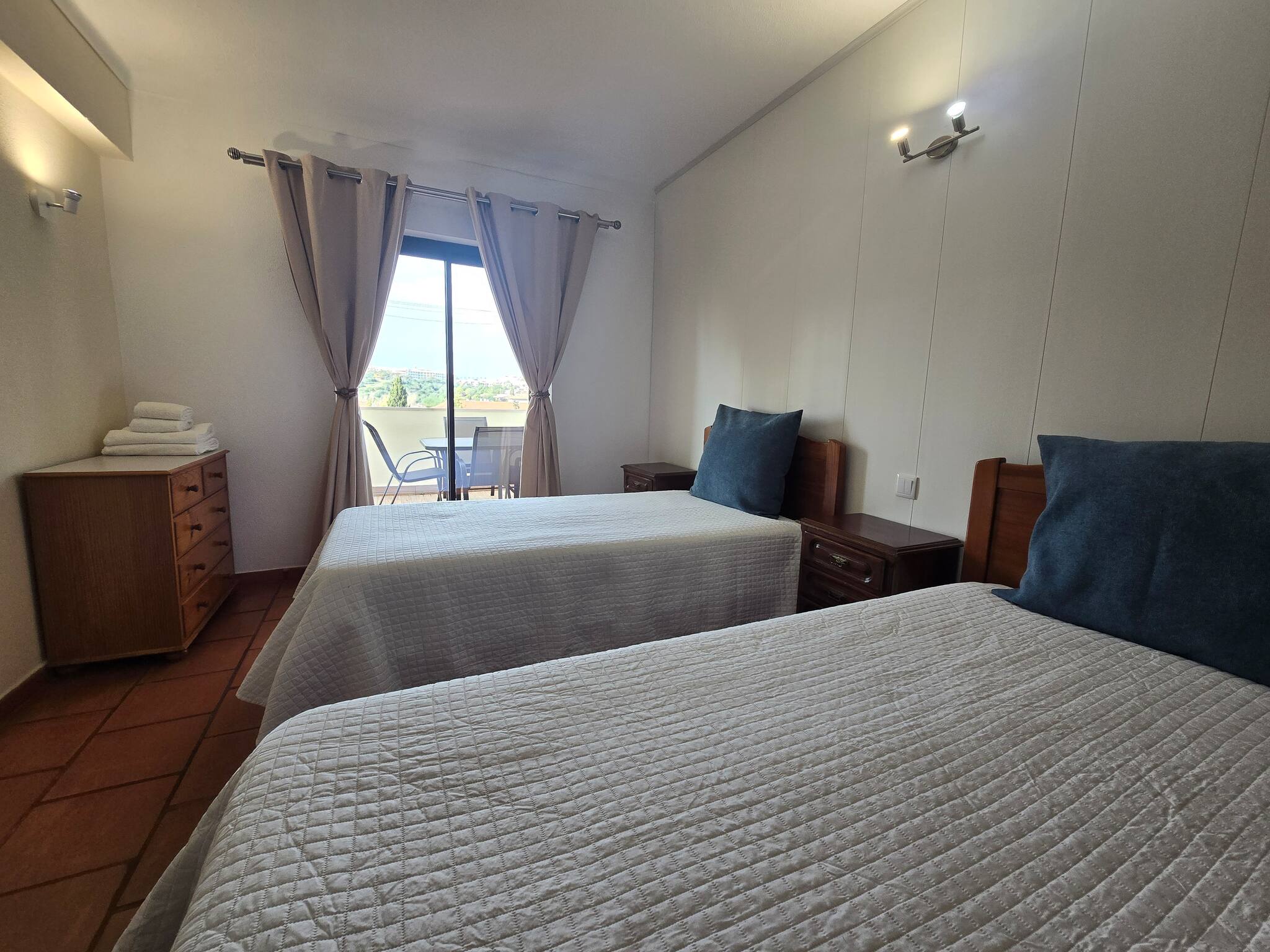 The room: It has two single beds, ideal for a peaceful night's sleep, enjoy outdoor meals on the charming balcony.